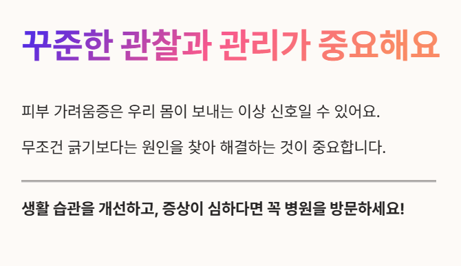 오늘 알려드린 내용을 바탕으로 생활 습관을 개선하고, 증상이 심하다면 꼭 병원을 방문해 건강한 피부를 되찾으시길 바랄게요! 🤗
