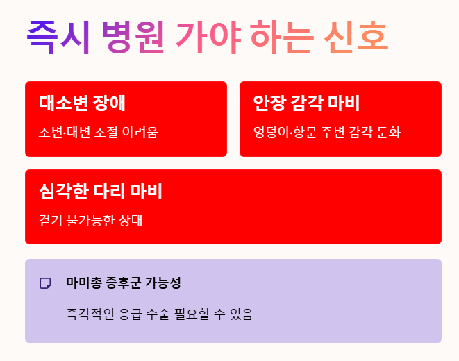 대부분의 허리디스크 증상은 휴식과 치료로 호전되지만, 즉시 병원을 찾아야 하는 '적색 신호'가 있어요.