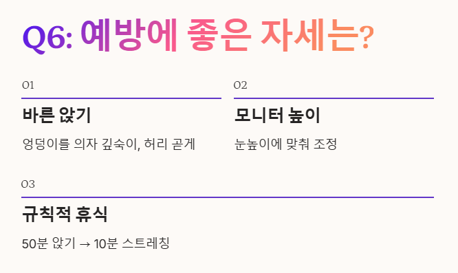Q6: 허리디스크 예방에 좋은 자세가 있나요?