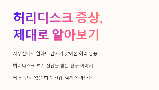 허리가 너무 아파서 병원에 갔더니 '허리디스크' 초기 진단을 받았다고 하더라고요. 😱