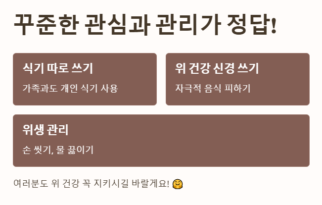 저도 이제부터 식구들과 식기 꼭 따로 쓰고, 위 건강에 더 신경 쓰기로 다짐했답니다. 😊