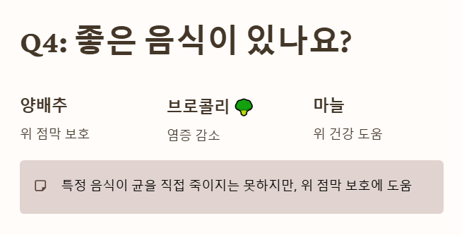 Q4: 헬리코박터균에 좋은 음식이 있나요?