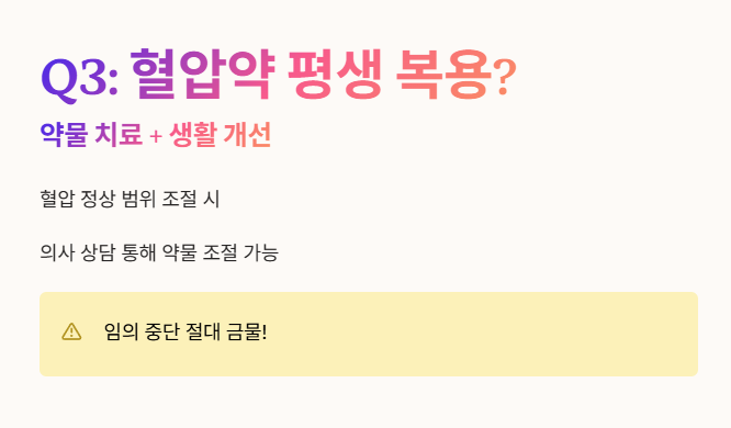 Q3: 혈압약은 한 번 먹으면 평생 먹어야 하나요?