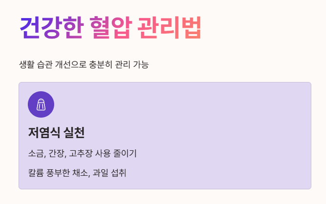 다행히 혈압은 생활 습관 개선만으로도 충분히 관리할 수 있어요.