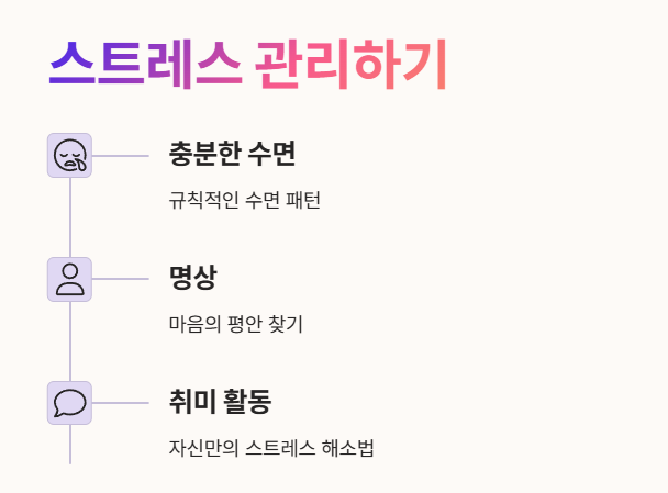 - 충분한 수면을 취하고, 명상이나 가벼운 산책, 취미 활동 등을 통해 스트레스를 해소하는 자신만의 방법을 찾아보세요. 😊