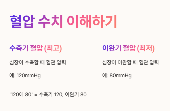 보통 '120에 80'이라고 말한다면, 수축기 혈압이 120mmHg, 이완기 혈압이 80mmHg라는 뜻이랍니다. ✅